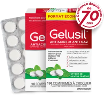 Depuis plus de soixante-dix ans, GelusilMD apporte un soulagement rapide aux brûlures d'estomac.