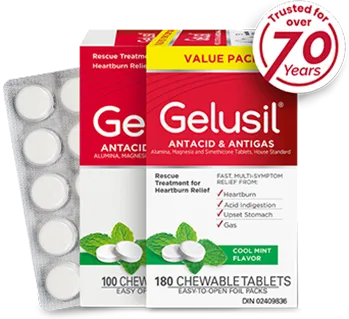 For over seven decades, Gelusil® has consistently delivered swift comfort during episodes of heartburn symptoms.